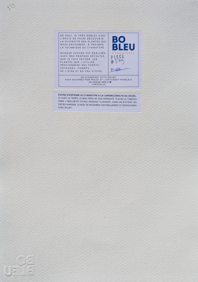 Note : Le bleu du cyanotype peut légèrement varier selon les réglages de votre écran.